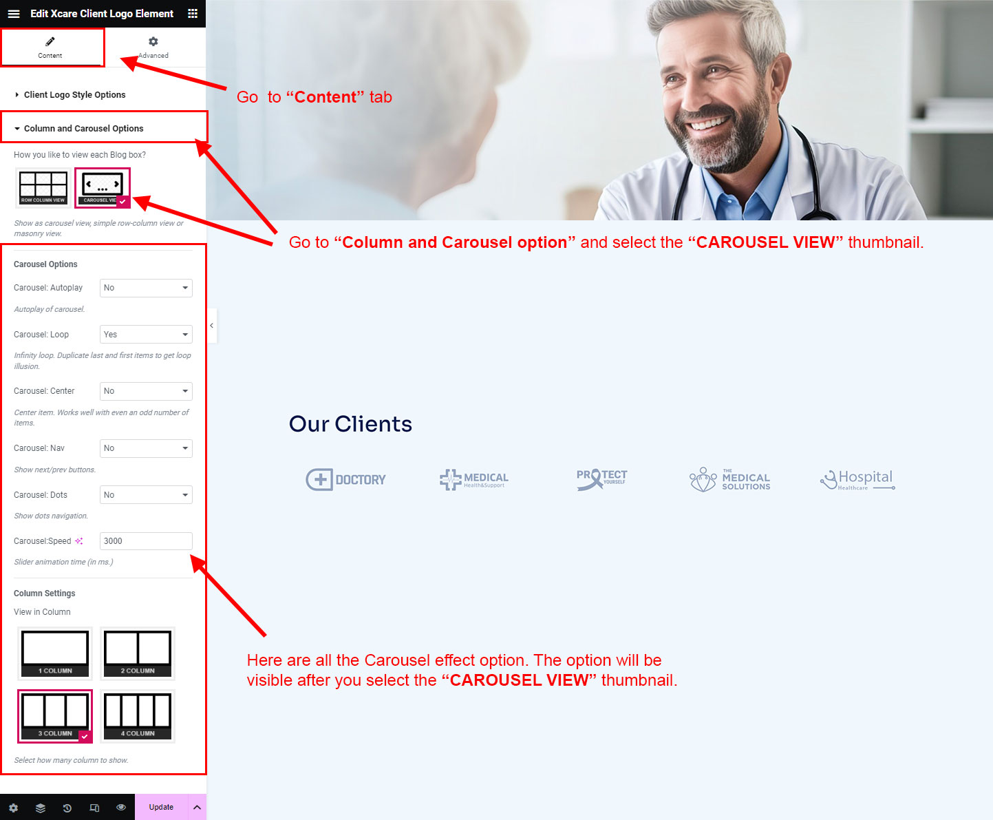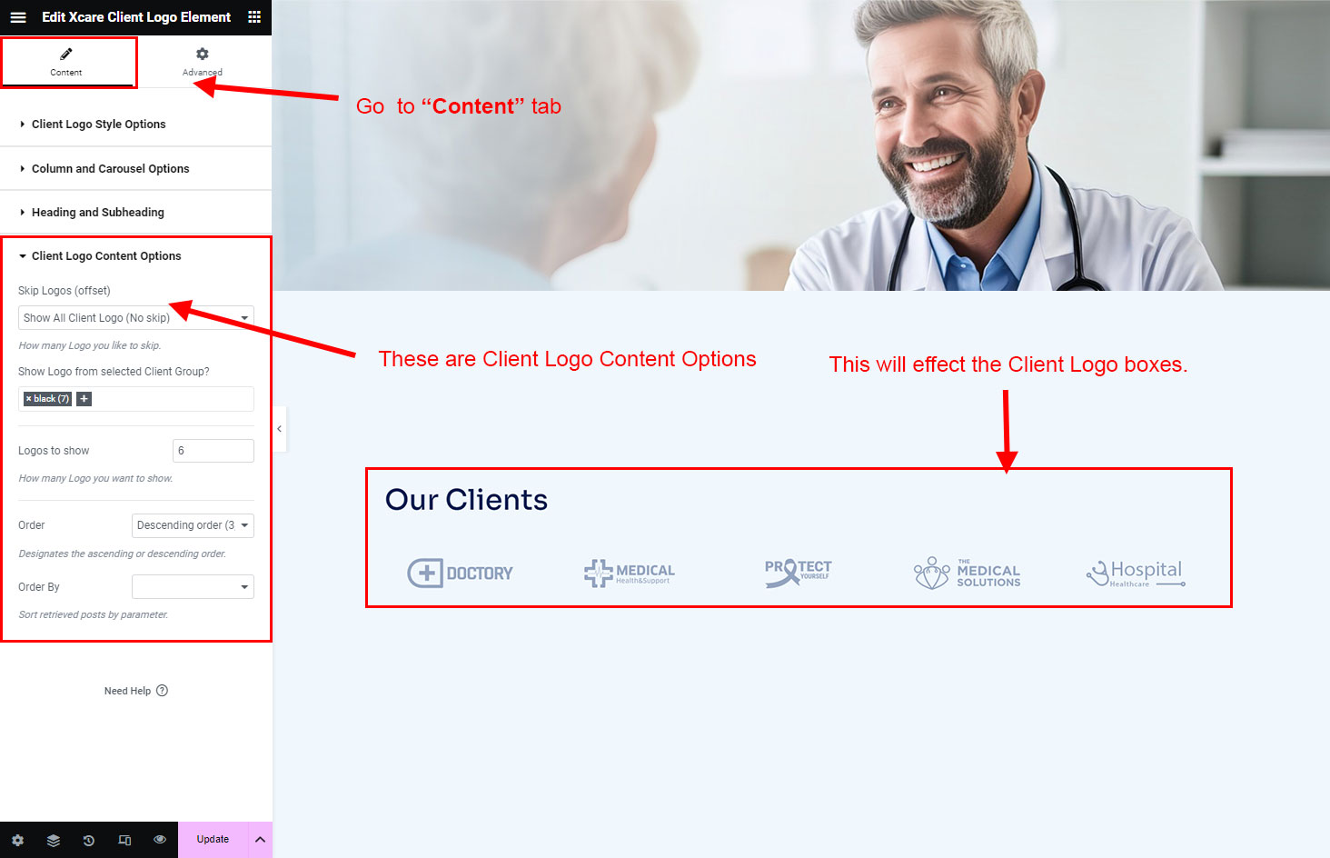 You can select the client-logo options here. Like how many client-logo you like to show, show client-logo from selected group (category), client-logo order etc.