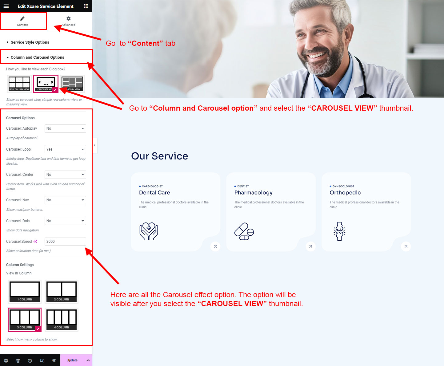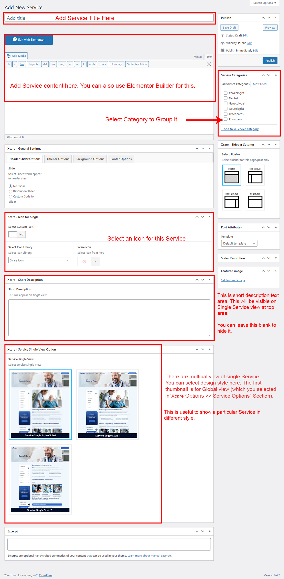 If you already done demo content setup than you can edit existing service and check how we added data so you can understand each option perfectly.