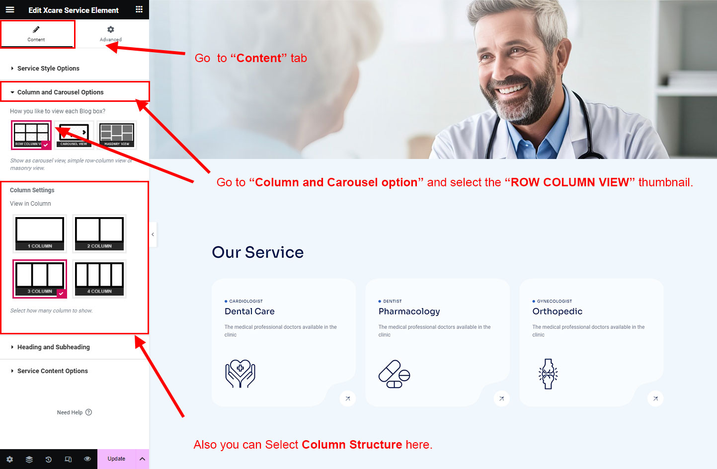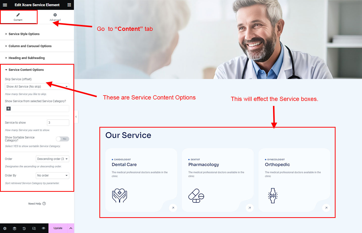 You can select the service options here. Like how many service you like to show, show service from selected category, service order etc.