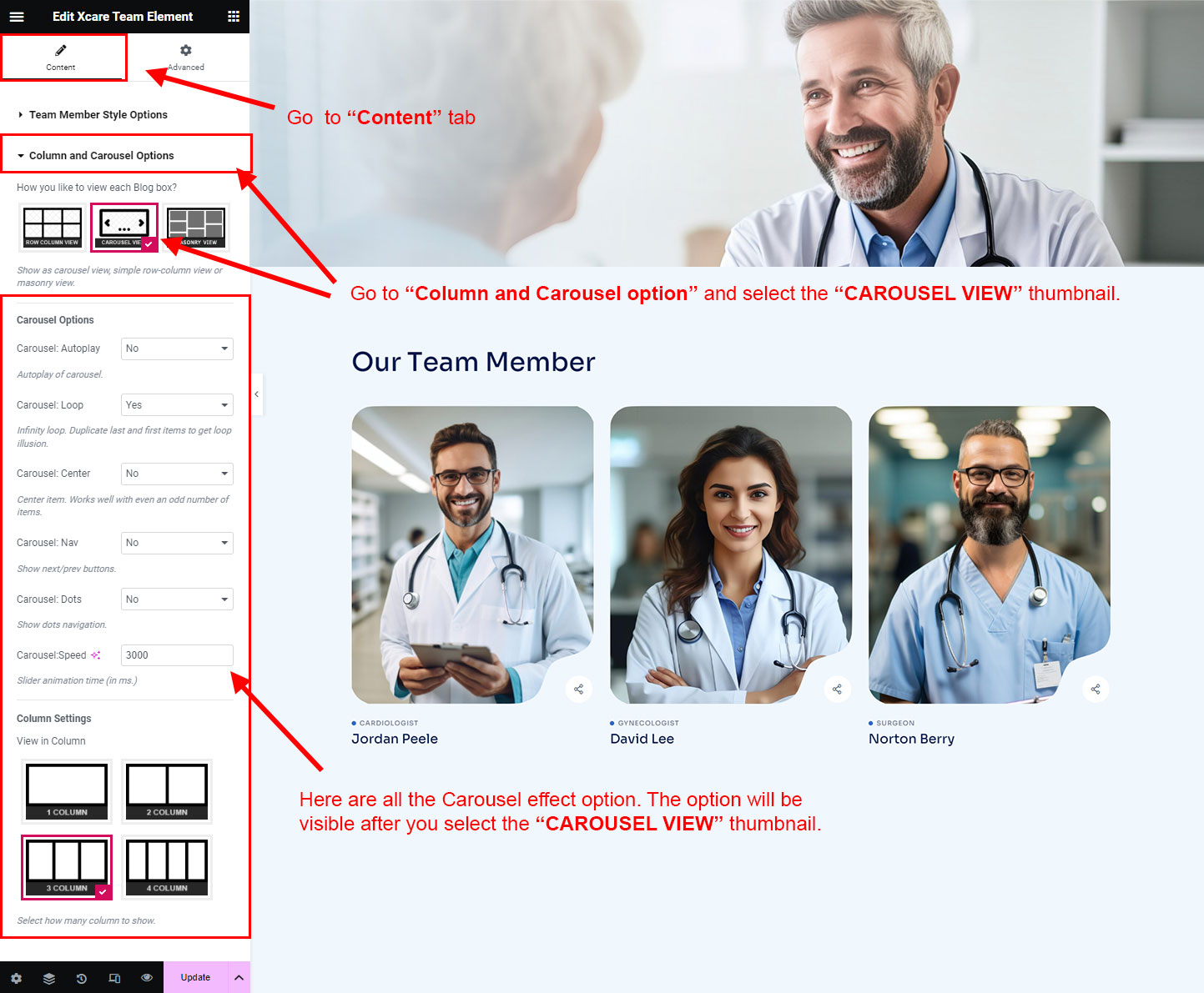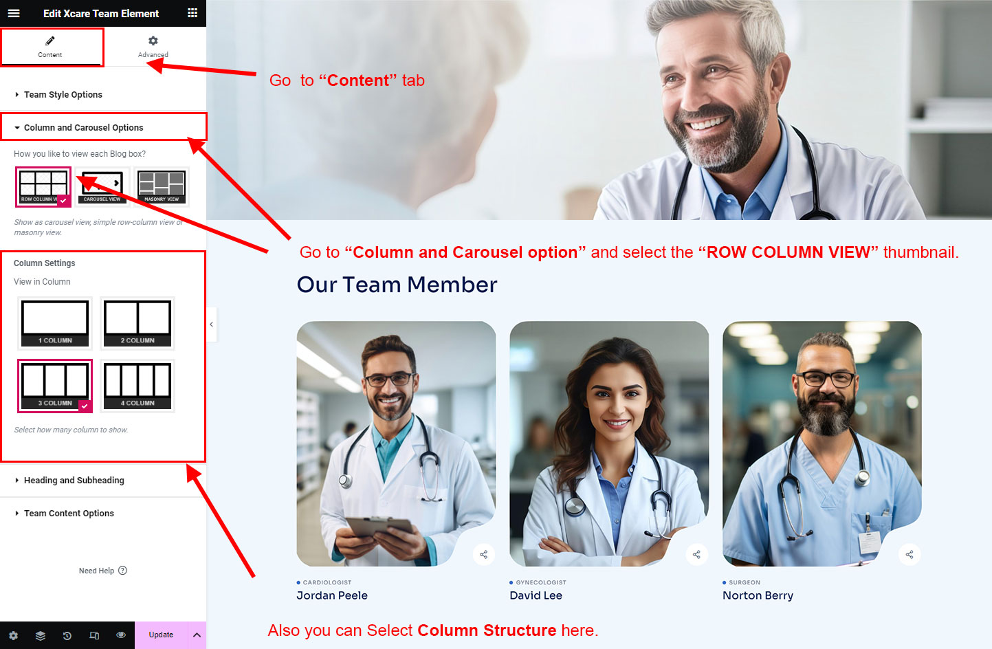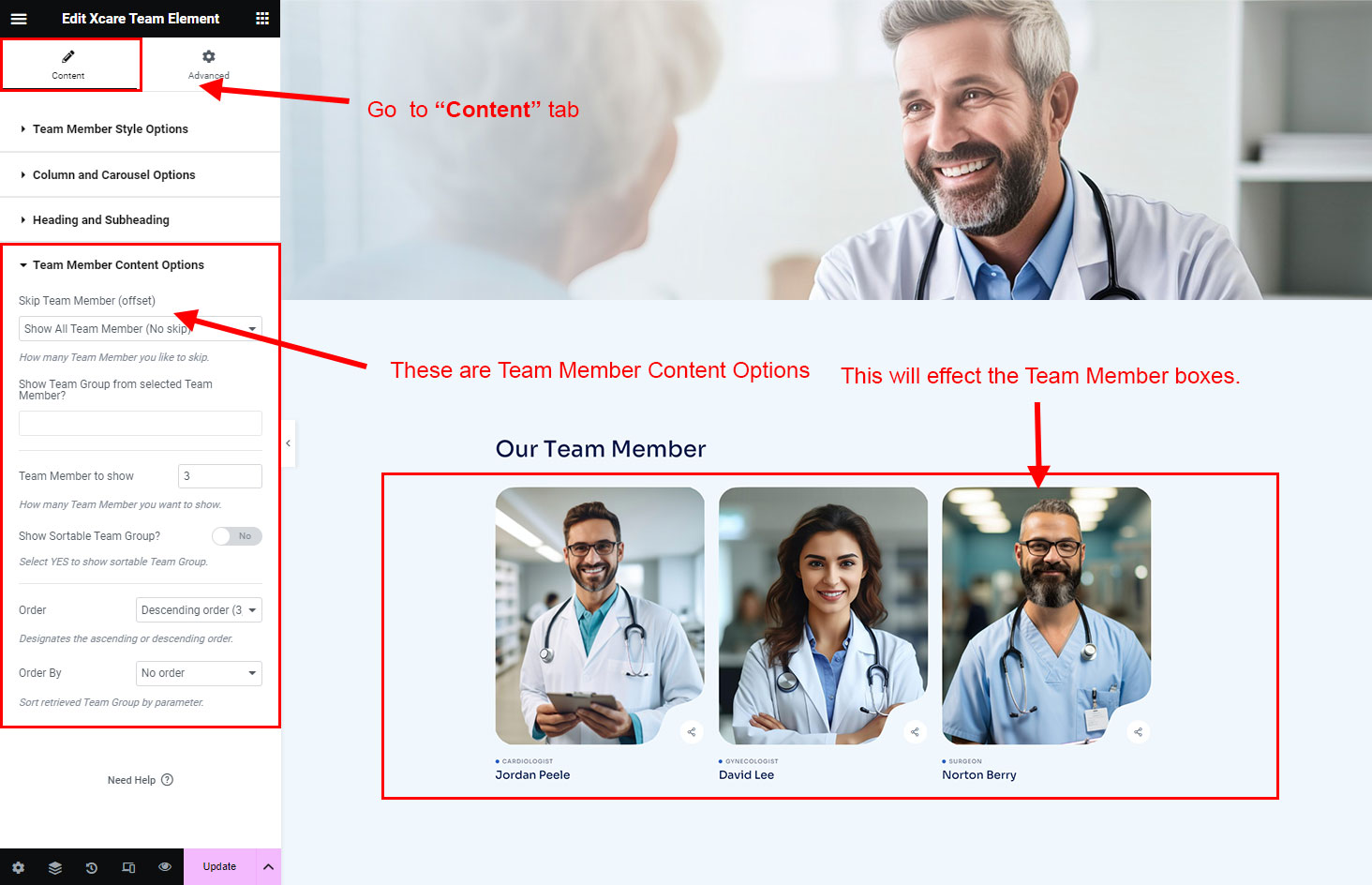 You can select the team options here. Like how many team you like to show, show team from selected category, team order etc.