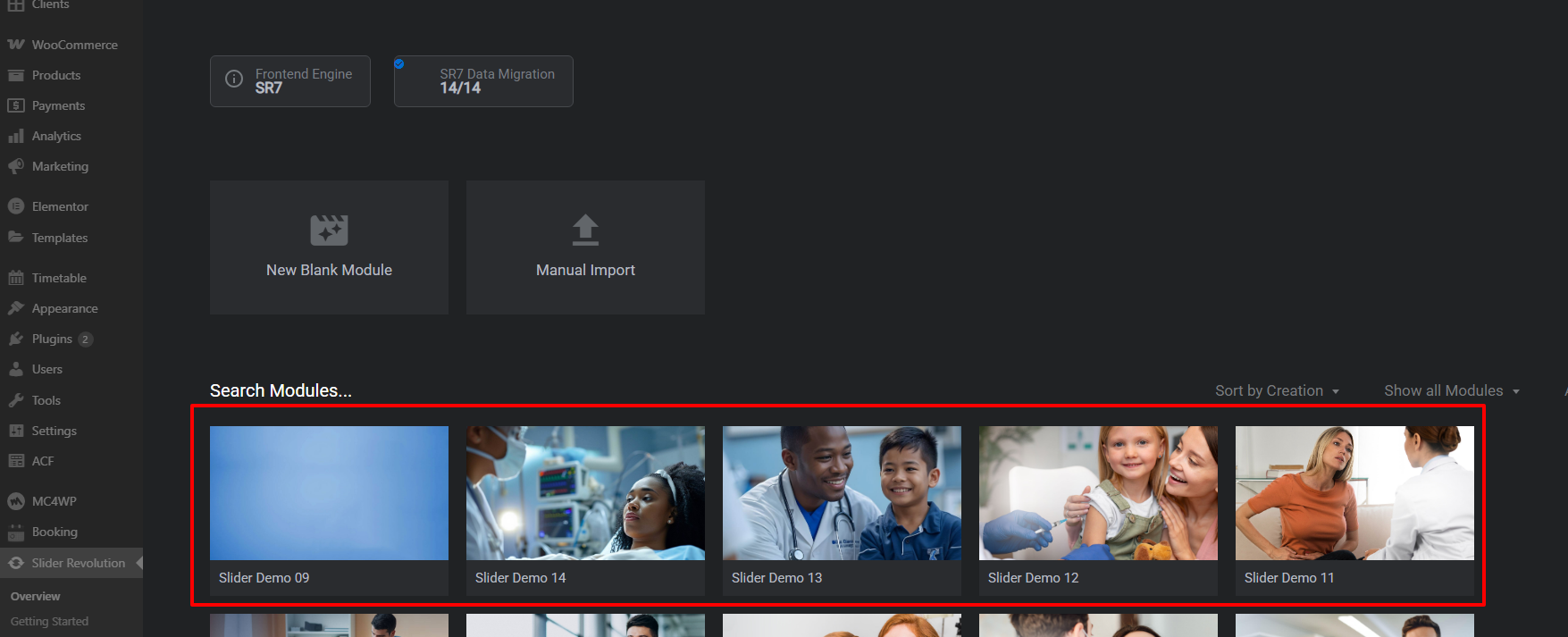 Once imported, the sliders will be automatically assigned to the homepages. You can also find all imported sliders in the Slider Revolution section, where you can edit and use them on your website.