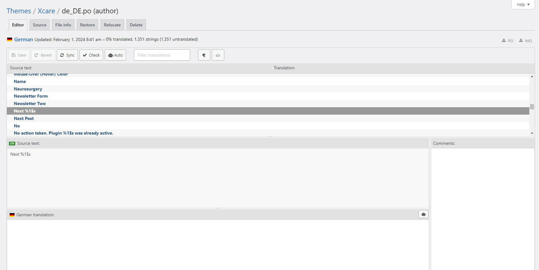 Xcare-de_DE.mo file on your server in