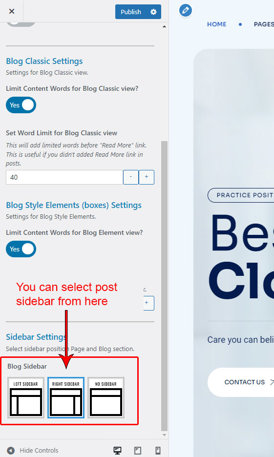 This is specially created sidebar postion (either left or right as selected in Xcare Options section) that will be shown as sidebar widget on Blog pages like blog list view, single post view, blog category view etc.