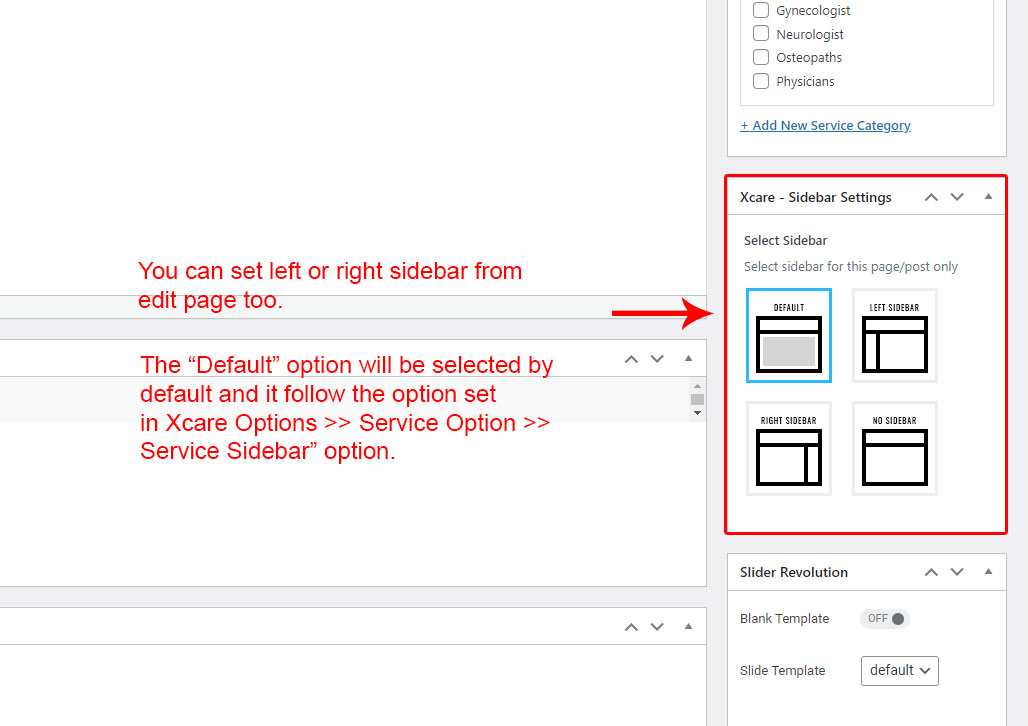 This is specially created sidebar postion for Service Category view only. You can select sidebar view (left or right) in Xcare Options >> Service Options section. Also you can show Service Category without sidebar too.