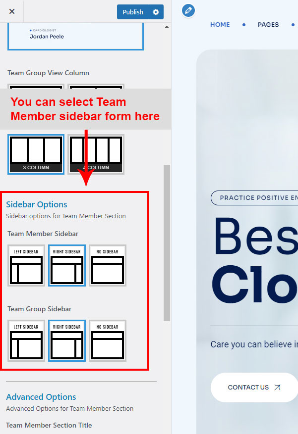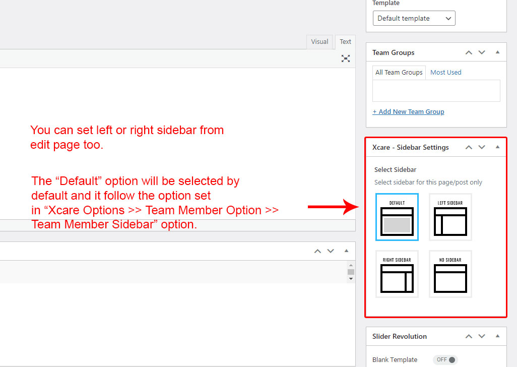 This is specially created sidebar postion for Team Group view only. You can select sidebar view (left or right) in Xcare Options >> Team Member Options section. Also you can show Team Group without sidebar too.
