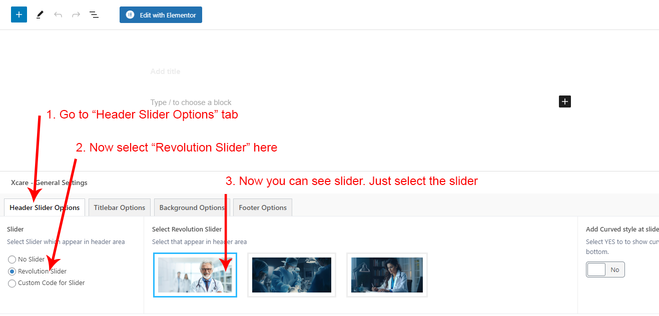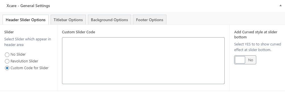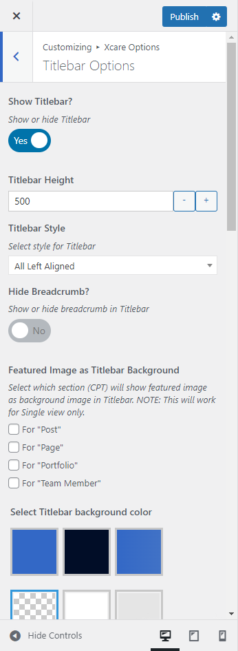 This will override the options set under Xcare Options > Titlebar Settings options. This will help you to set special design the Titlebar on specific page or post.