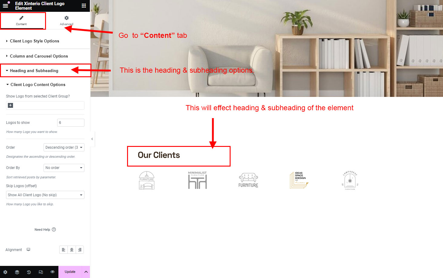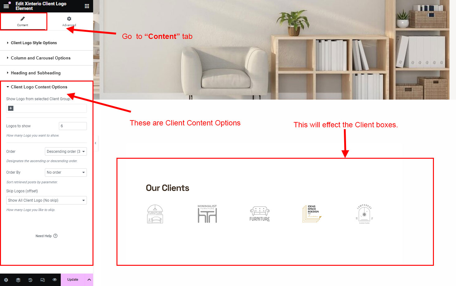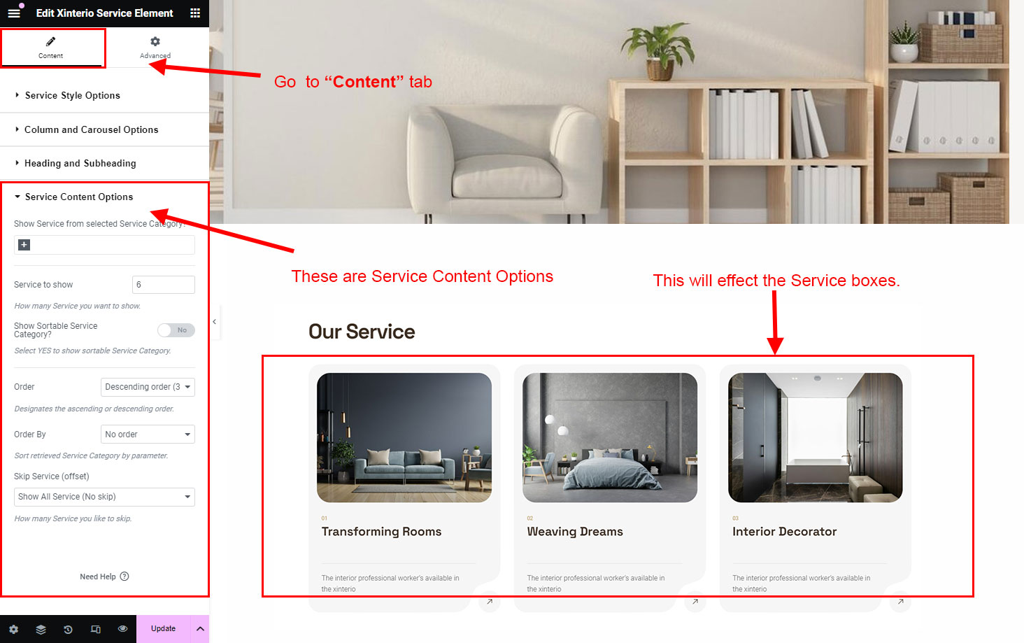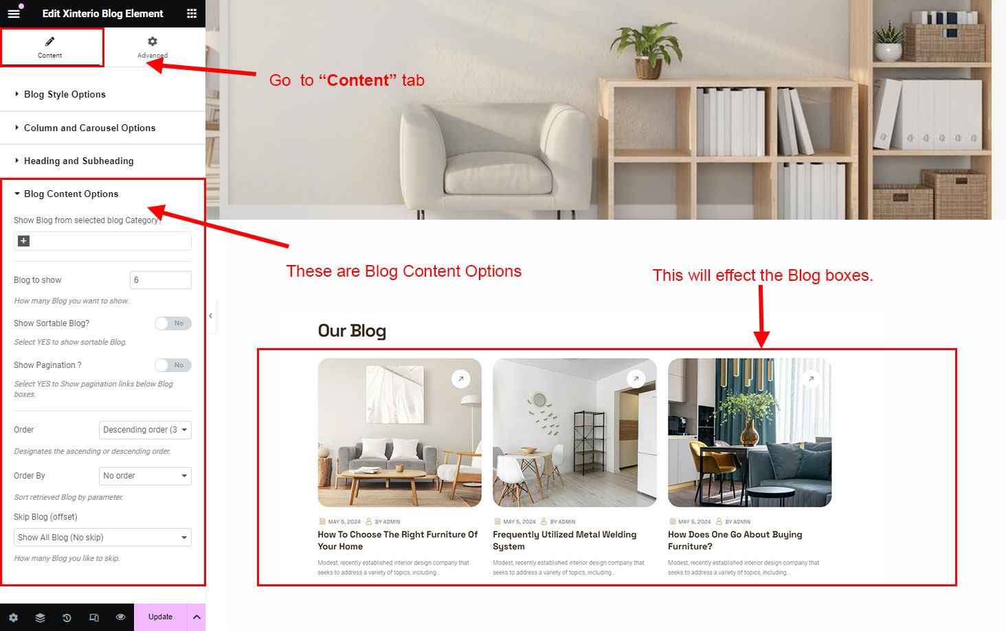 There are different sections in Xinterio theme. Here you will find name of each section name so you can find their options easily. You can customize each sections from Xinterio Options easily.