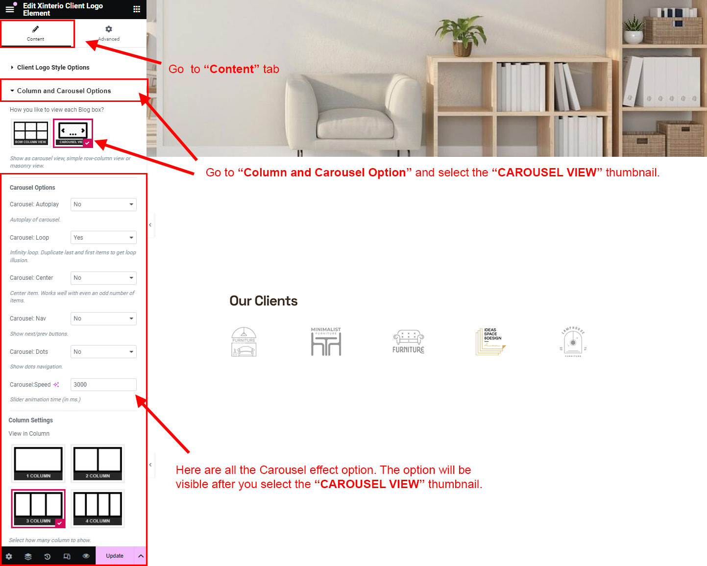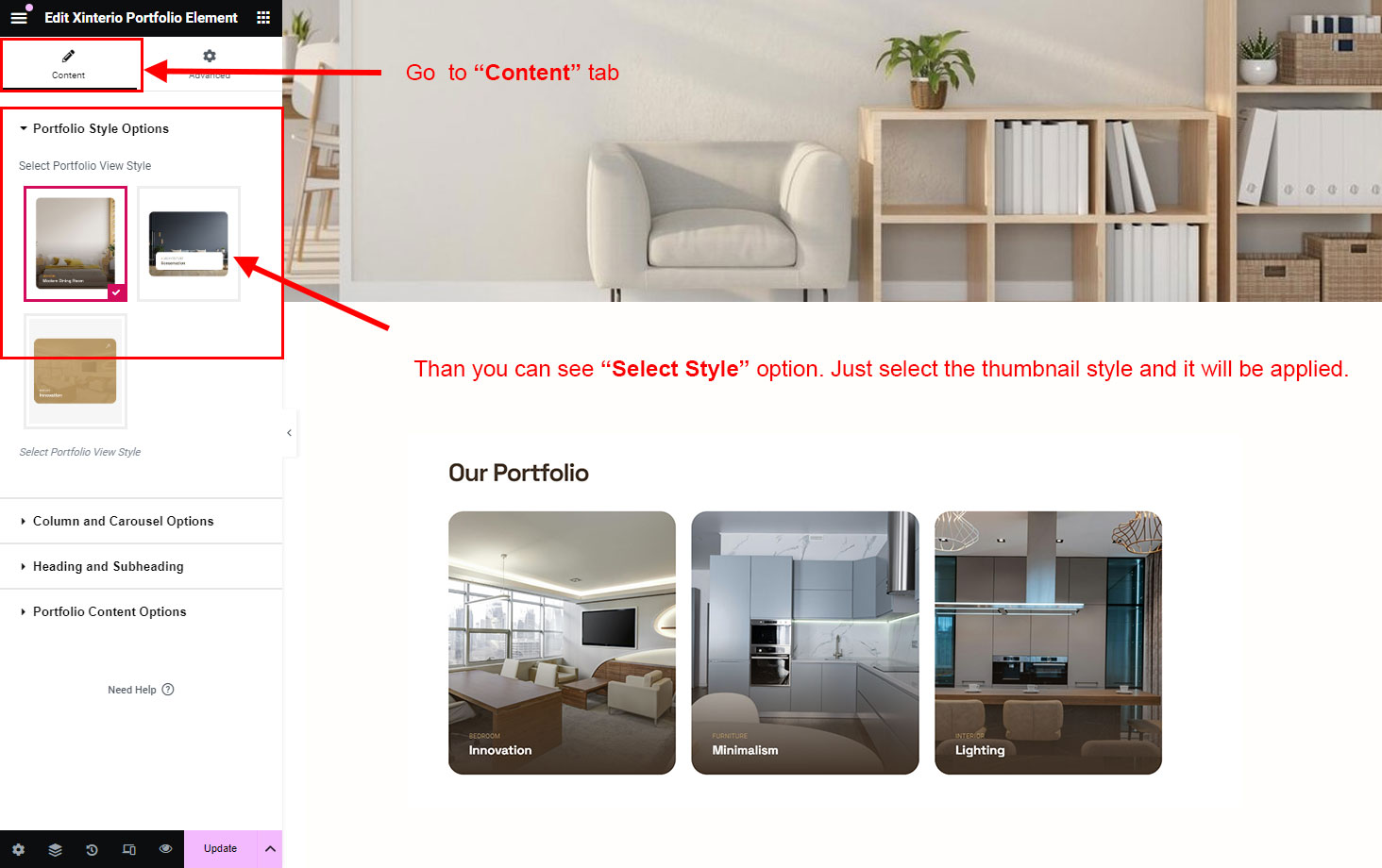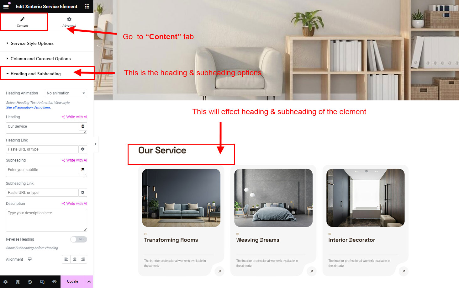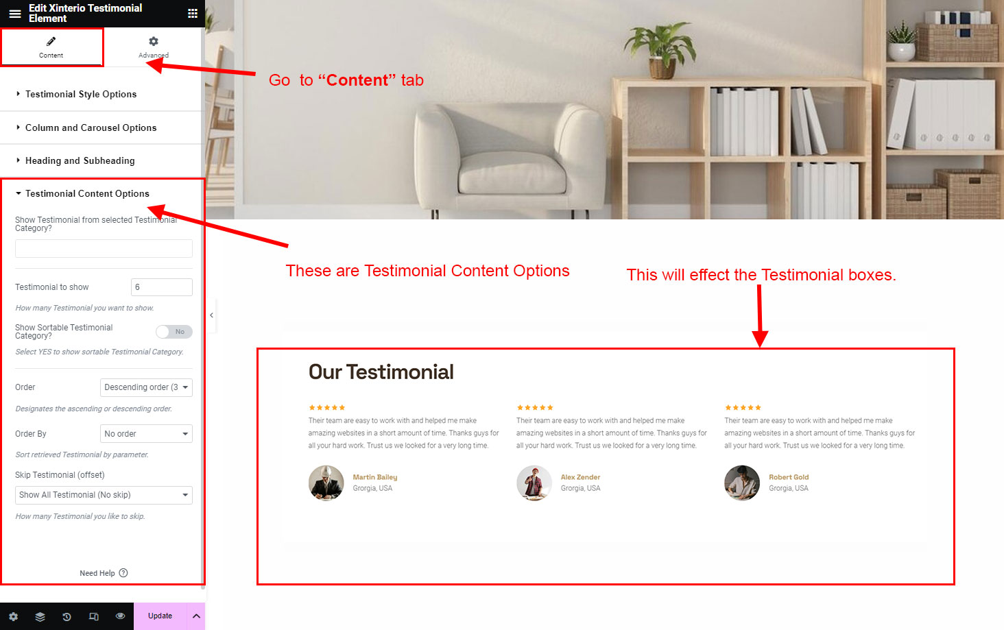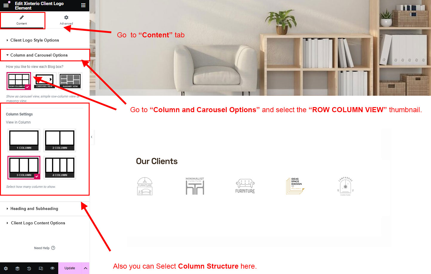 There are different sections in Xinterio theme. Here you will find name of each section name so you can find their options easily. You can customize each sections from Xinterio Options easily.