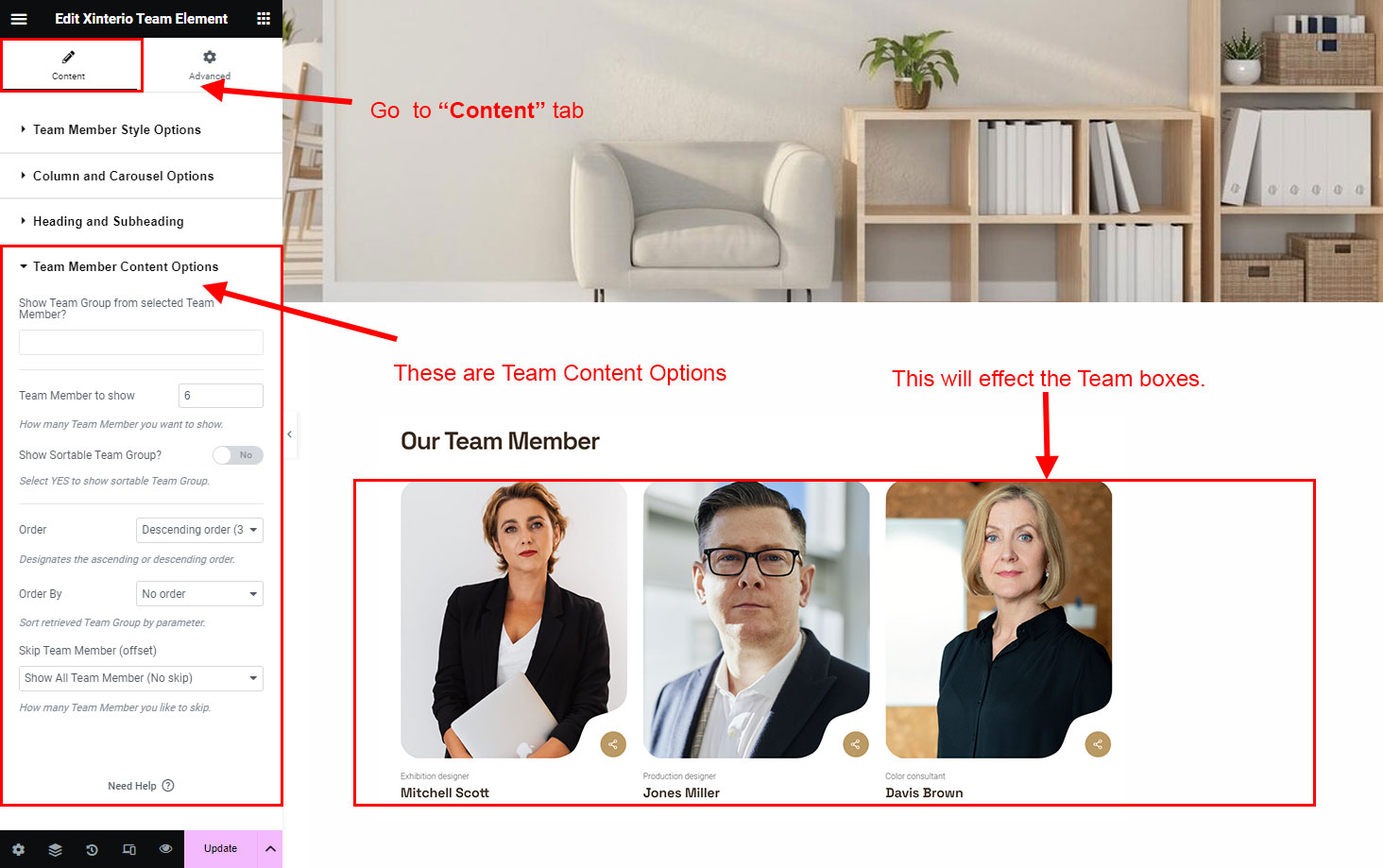 This is specially created sidebar postion for Team Group view only. You can select sidebar view (left or right) in Xinterio Options >> Team Member Options section. Also you can show Team Group without sidebar too.