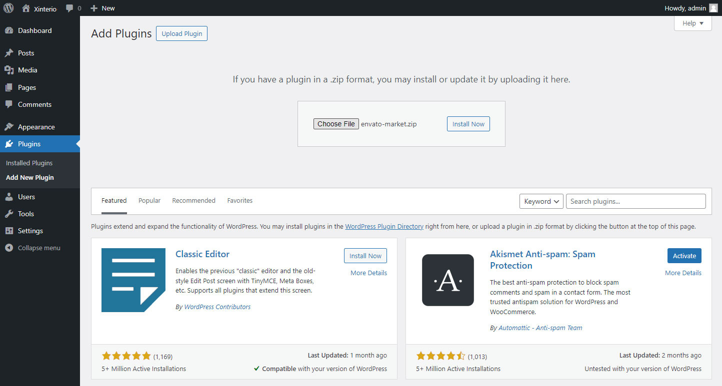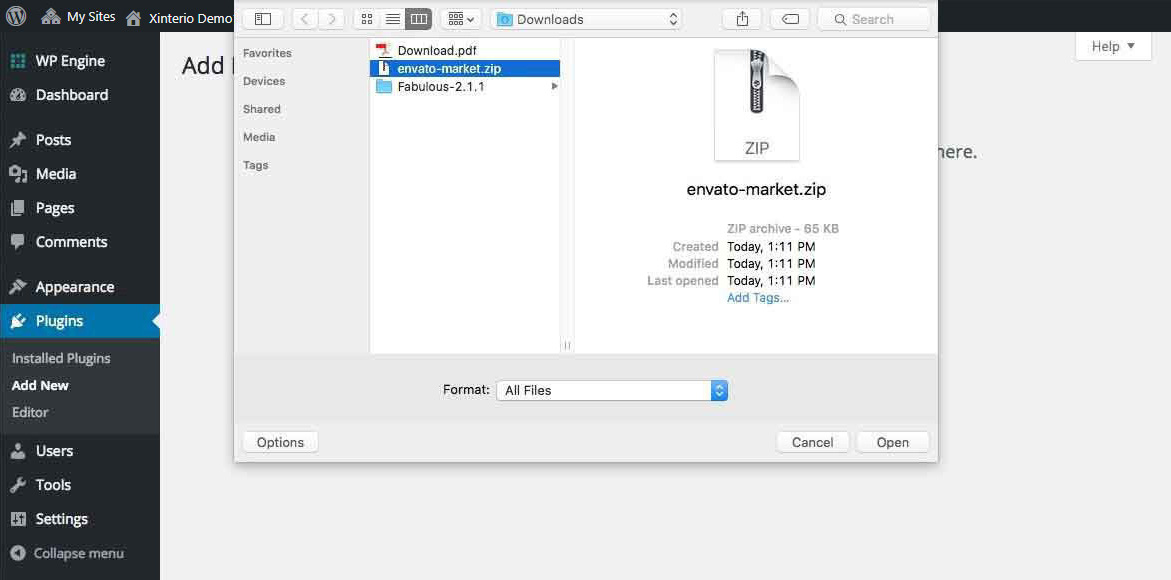 • First, install Envato Market plugin. Click here to download the plugin. This will download the zip file with the plugin in it. No need to unzip it – we’ll be installing it as is. Now that you have the plugin, go ahead and log into WordPress admin section.