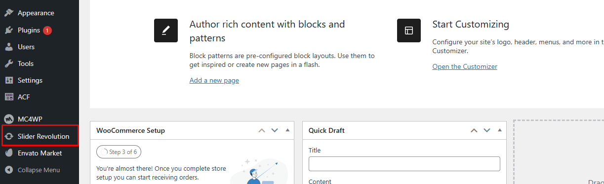 2. In your WordPress admin dashboard, navigate to Slider Revolution.