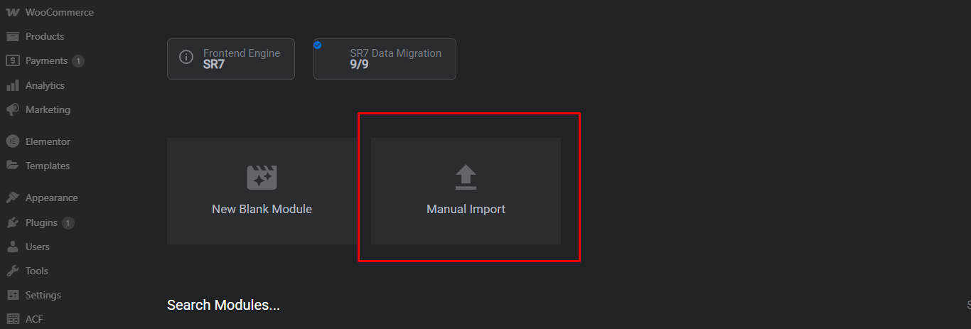 3. Click the Manual Import button.