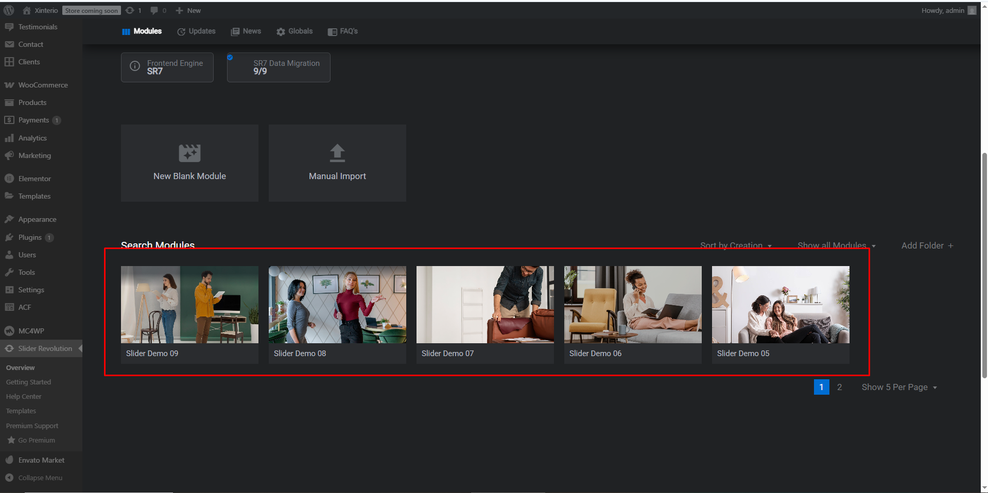 Once imported, the sliders will be automatically assigned to the homepages. You can also find all imported sliders in the Slider Revolution section, where you can edit and use them on your website.