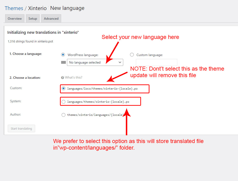 Within this section, you’ll find everything you need to localize and internationalize the Xinterio theme into your language. It is split into several subsections to help you easily find what you need. There are different ways for this: