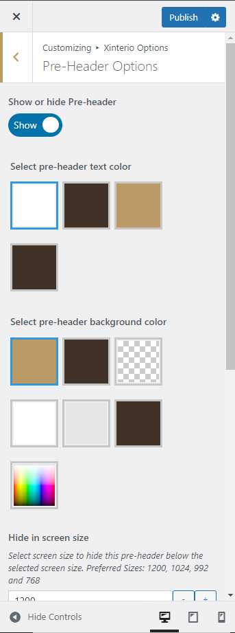 • Pre-header Options: