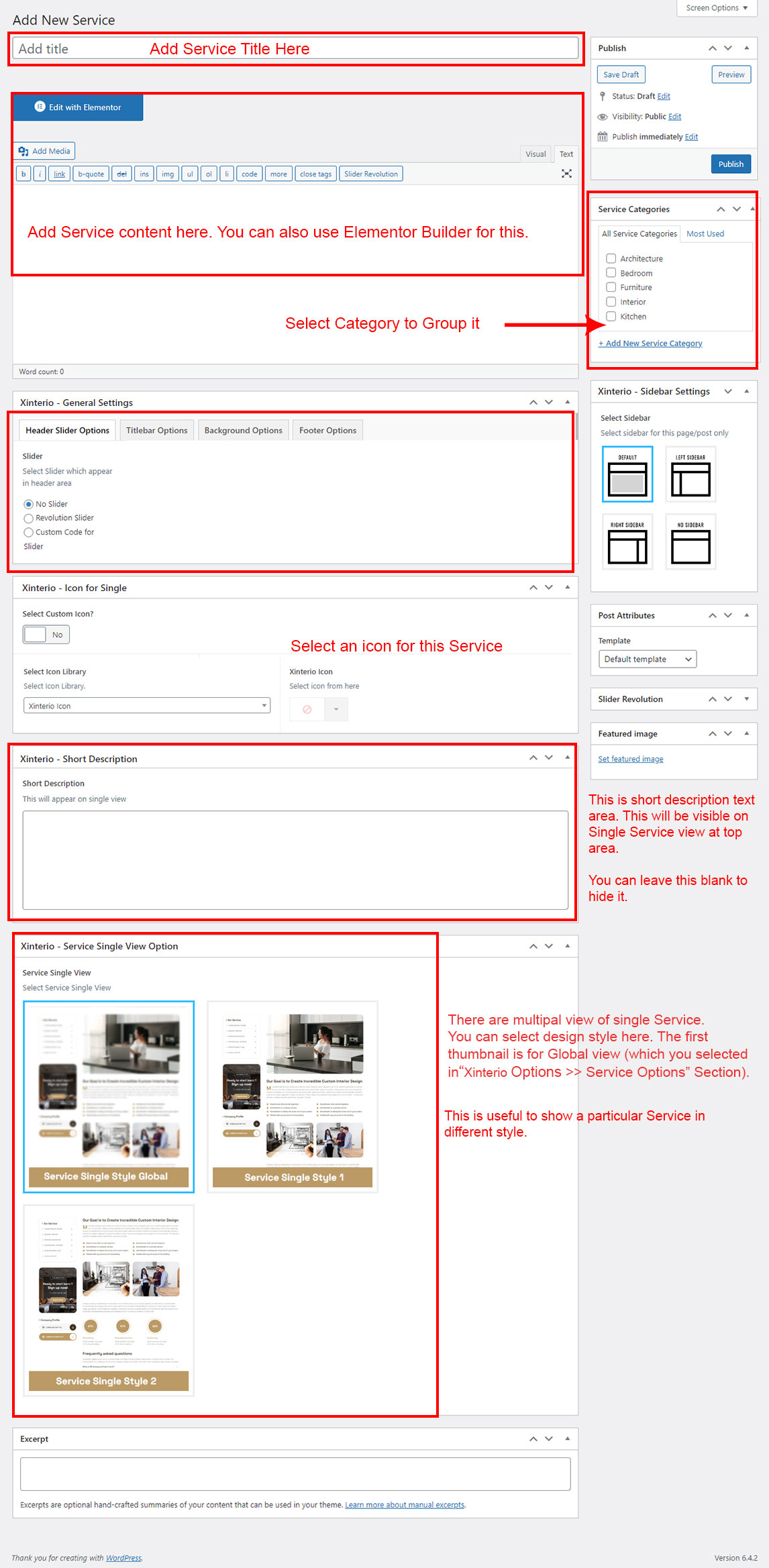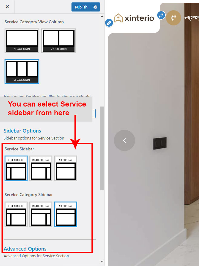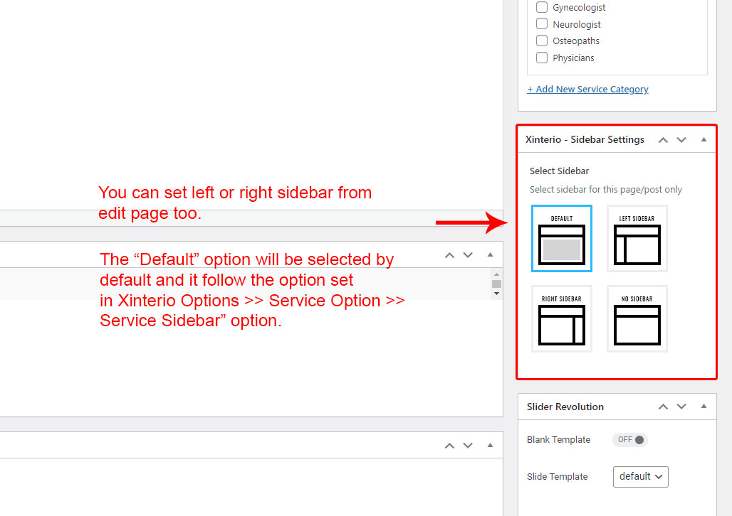 This is specially created sidebar postion for Service Category view only. You can select sidebar view (left or right) in Xinterio Options >> Service Options section. Also you can show Service Category without sidebar too.