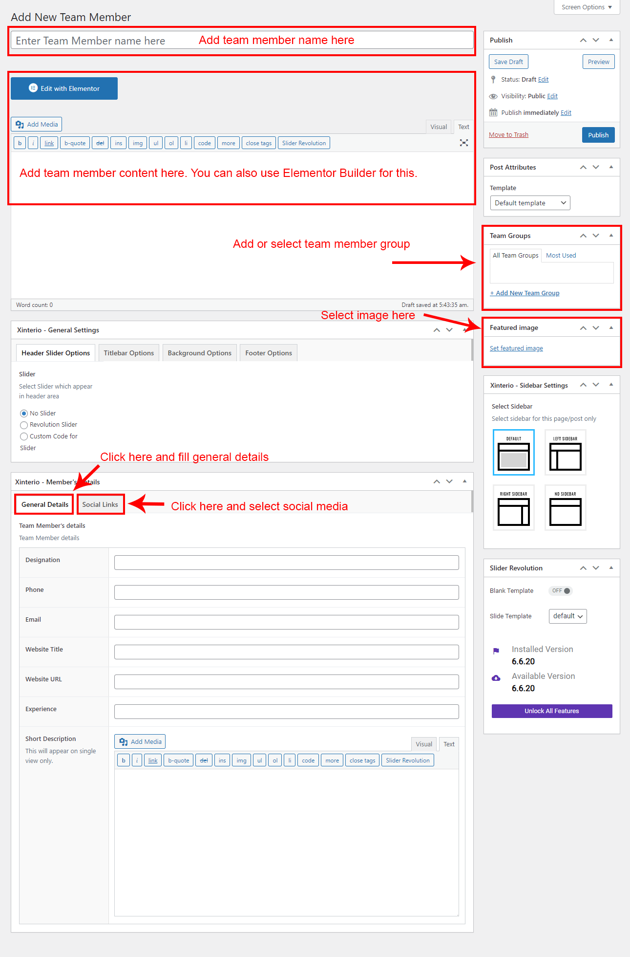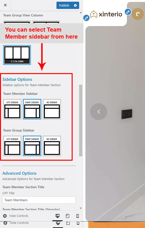 This is specially created sidebar postion for Team Member single view only. You can select sidebar view (left or right) in Xinterio Options >> Team Member Options section. Also you can show single Team Member without sidebar too.