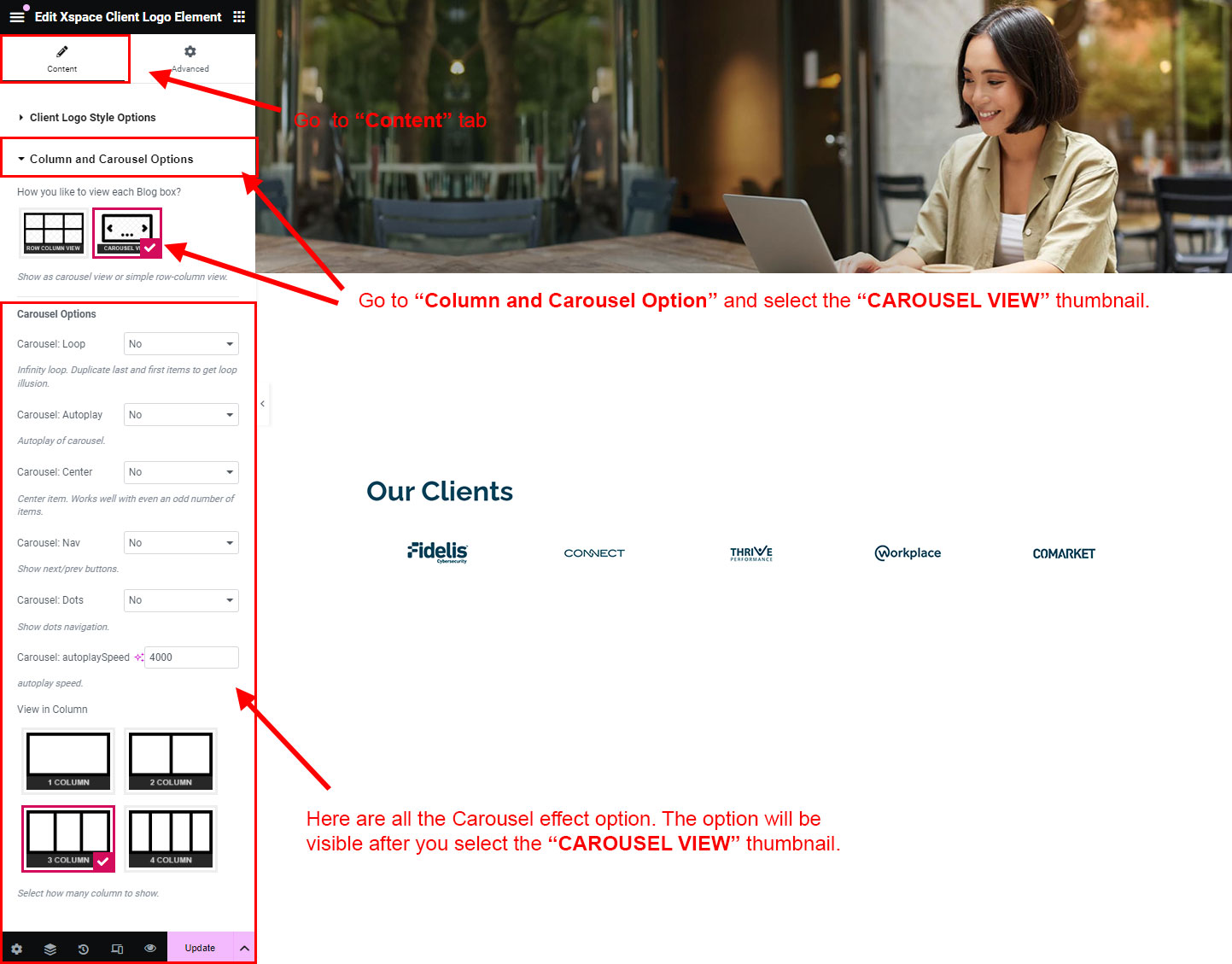 You can select the client-logo options here. Like how many client-logo you like to show, show client-logo from selected group (category), client-logo order etc.