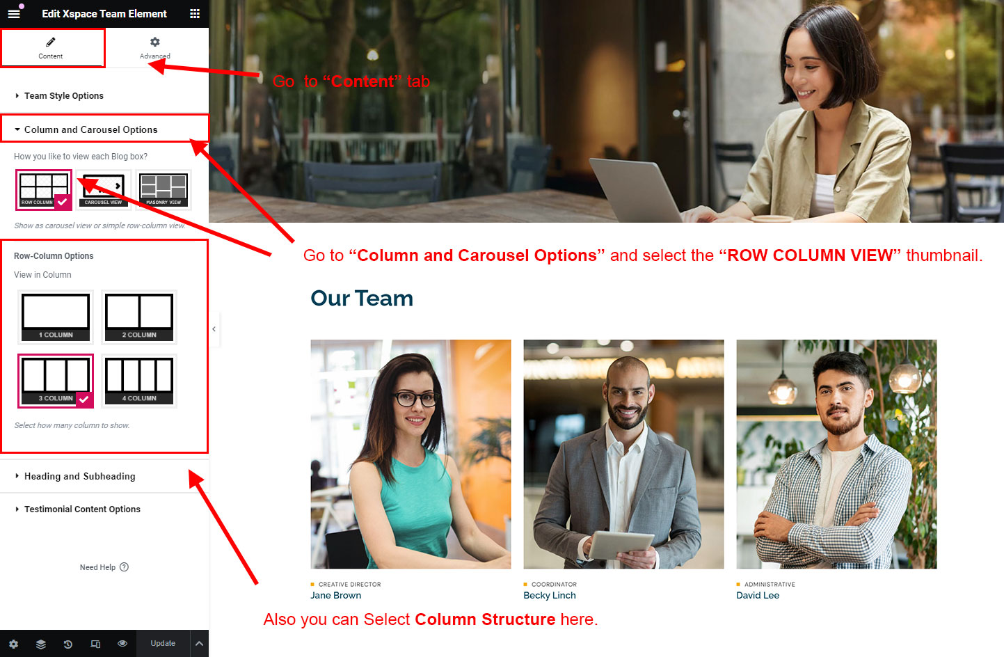 You can select the team options here. Like how many team you like to show, show team from selected category, team order etc.