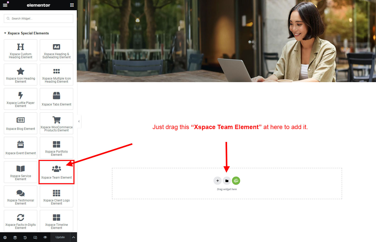 Now we have some Team posts. So we can show all Team on a page. Create a new page and add Xspace Team Member Element on a page by dragging it.