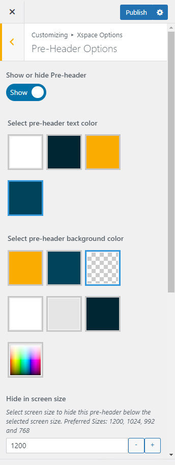 Pre-header section will appear above header area. You can show or hide it globally from Xspace Options >> Pre-header Settings section.