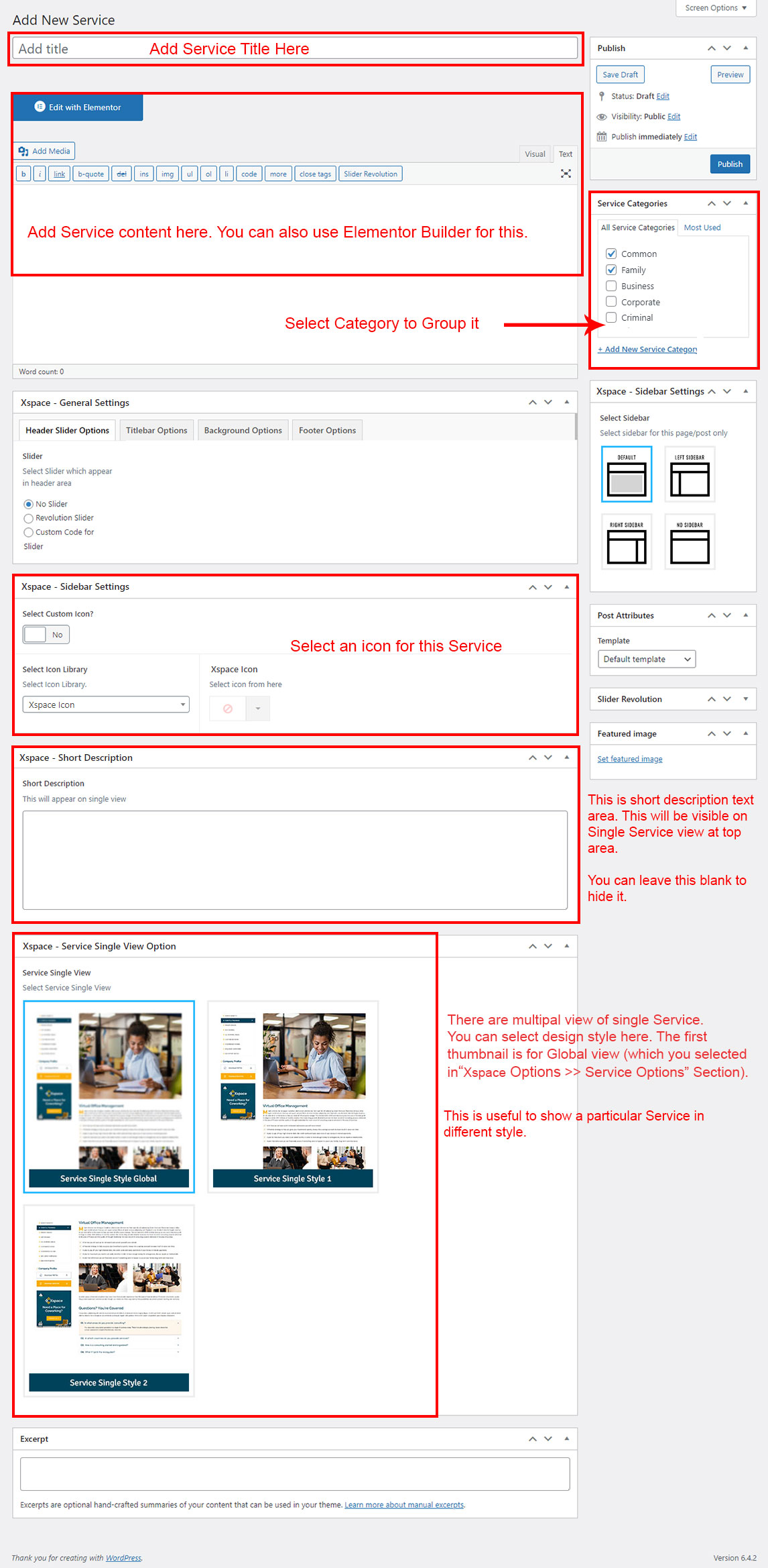 If you already done demo content setup than you can edit existing service and check how we added data so you can understand each option perfectly.